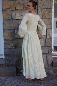 Das abgebildete Kleid hat die Größe 38/40 und kann für Dich handgefertigt werden.
